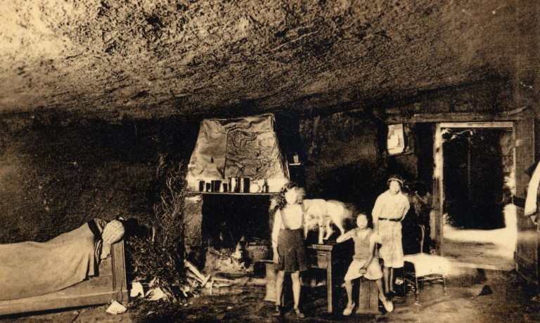 L'aménagement intérieur de l'abri sous roches : remarquer la cheminée (collection particulière)Immatriculation