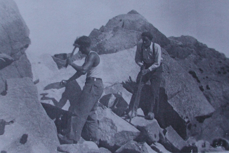 Les trous de mine réalisés à la masse et au burin par Roger et Zacharie Belloir à Toul ar Staon vers 1950 (Belloir, UTL Lannion)Immatriculation