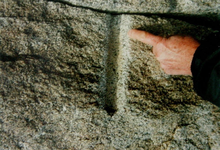 Trou foré au burin : trou rayé pour faciliter la fente dans la direction voulue à l'aide d'un rayeur (UTL Lannion)Immatriculation