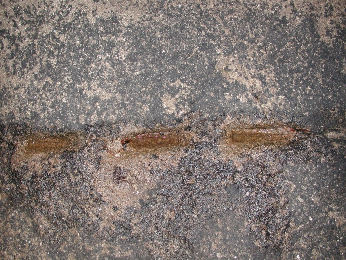 Détail des fentes opérés par les coins en bois sur une roche abandonnéeImmatriculation
