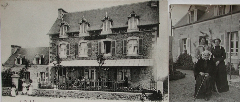 L'Hôtel Bellevue en 1911. Devant l'établissement à son neuvage : Joséphine Le Gaffric et sa fille Suzanne (collection particulière)Immatriculation