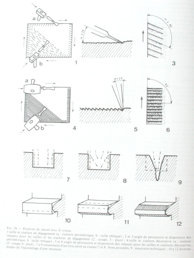 Dans : "L'outillage traditionnel du tailleur de pierre de l'Antiquité à nos jours"/Jean-Claude Bessac, Paris : Editions du CNRS, 1993, p. 124.Dessin.