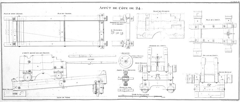 Plan d'un canon sur affût à châssis pivotant type Gribeauval (affût de côte de 24), Musée de l'Armée, ParisImmatriculation