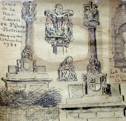 Vue générale du calvaire, croquis d'Henri Frotier de la Messelière, 23 novembre 1931 (AD 22)Immatriculation