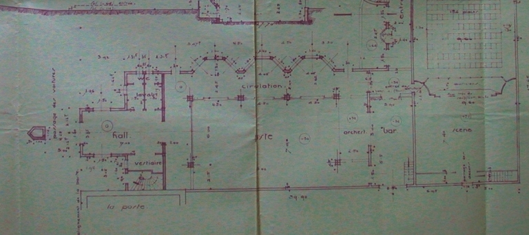Plan détaillé du cinéma-dancing de Saint-Quay-Portrieux, par l'architecte départemental Jean Fauny, 20 janvier 1932 (AD 22) : plan du rez-de-chaussée (hall, piste, orchestre)Immatriculation
