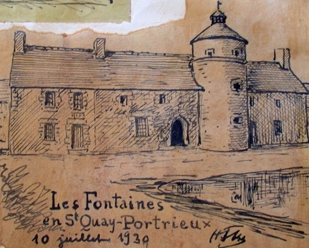 Vue générale du manoir des Fontaines, croquis d'Henri Frotier de la Messelière, 10 juillet 1930 (AD 22)Immatriculation