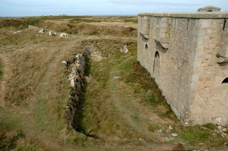 Vue du fossé sec du réduit de batterie de côte de Loqueltas, façade occidentaleImmatriculation
