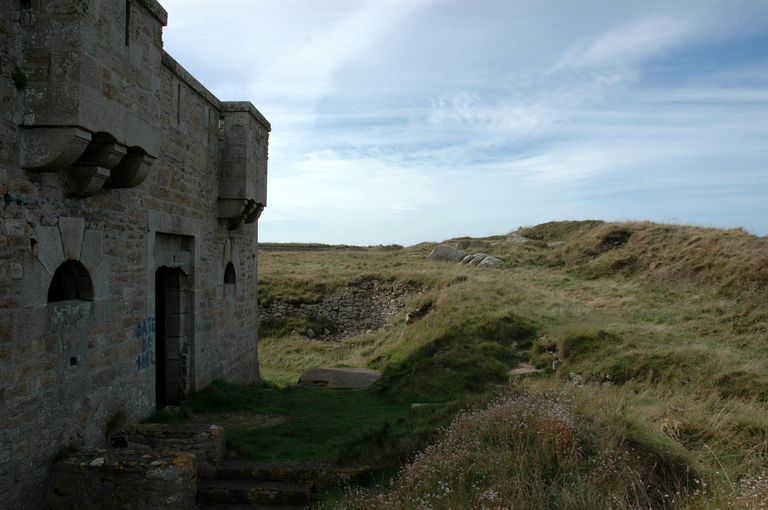 Corps de garde crénelé n° 3, année "1862" et batterie de Locqueltas (Ouessant),