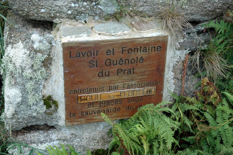 Vue de la plage du Prat, lavoir et fontaine Saint-Guénolé (signalétique mis en place par l'association Pouil ha Feunteun)Immatriculation