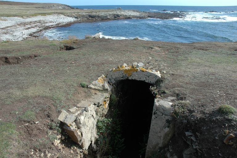 Vue de l'ensemble fortifié de Penn ar Viler, casemate aménagée dans le rocher pour canon de campagne tirant vers le sudImmatriculation