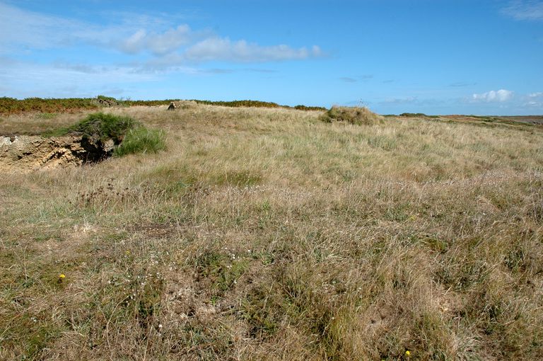 Batterie de côte (en équerre), corps de garde et magasin à poudre (détruits) de Porsguen (Ouessant),