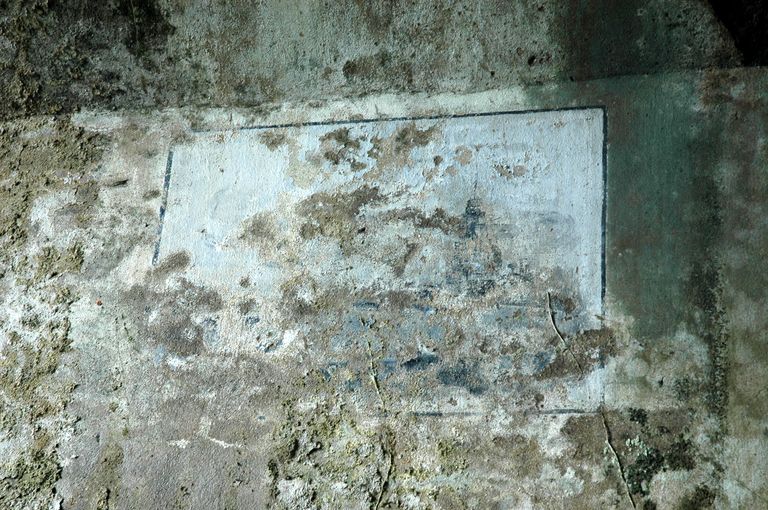 Vue de la caserne défensive Robert : deuxième salle voûtée, peinture murale (navire de guerre)Immatriculation