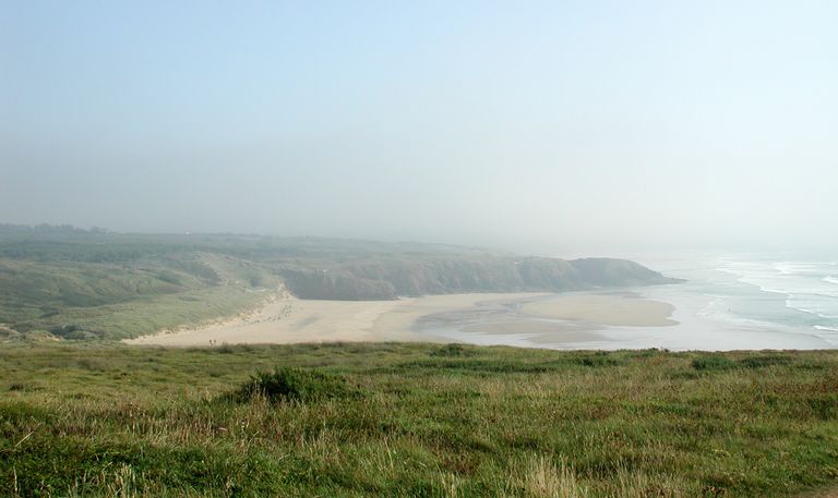 Vue générale de la plage de Lostmarc'h située au nord de La Palue : obstacles de plages (tétraèdres)Immatriculation