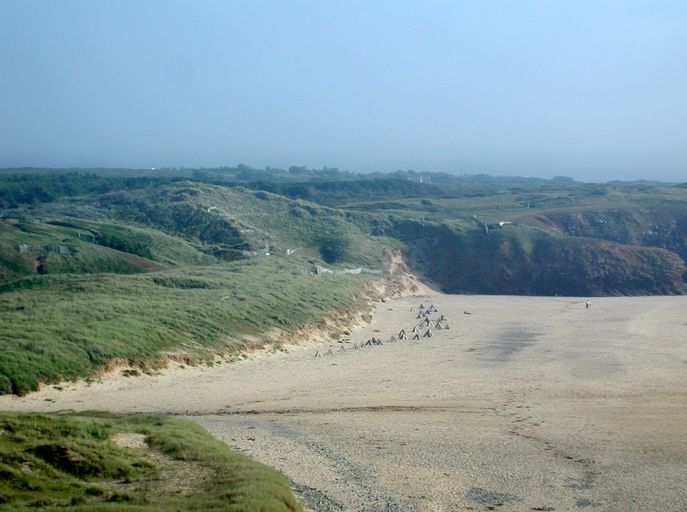 Vue générale de la plage de Lostmarc'h située au nord de La Palue : obstacles de plages (tétraèdres)Immatriculation