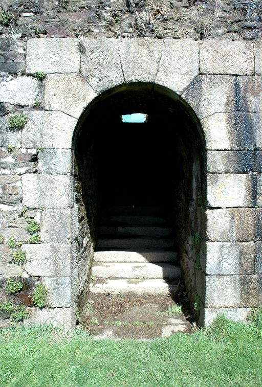 Vue du fort détaché du Questel : face de Keranroux, chemin de ronde, accès à la plate-forme d'artillerieImmatriculation