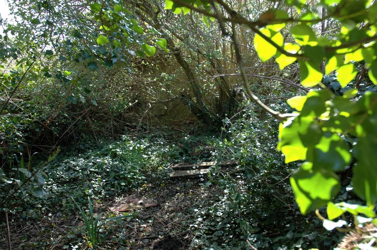 Vue de l'ensemble fortifié de Porsfeunteun : ouvrages allemands envahis par la végétationImmatriculation