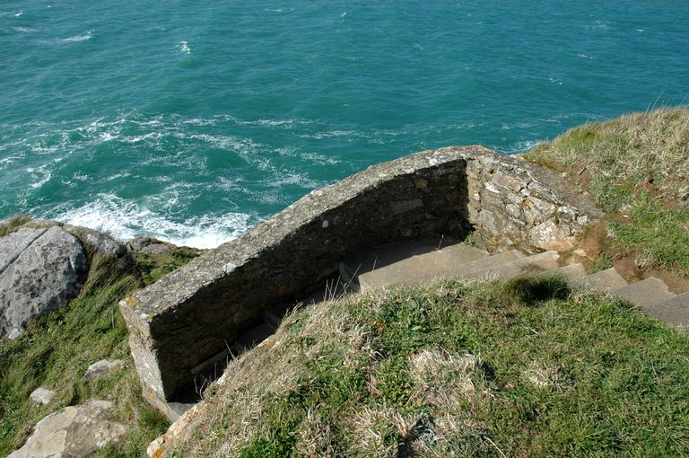 Vue de l'ensemble fortifié de la pointe du Renard : escalier d'accès à la plate-forme inférieure de la batterie de côteImmatriculation