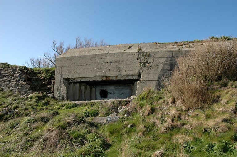 Vue de l'ensemble fortifié de la pointe du Renard : casemate pour canon de 75 mm orienté vers les pointes de Penzer et Saint-MathieuImmatriculation