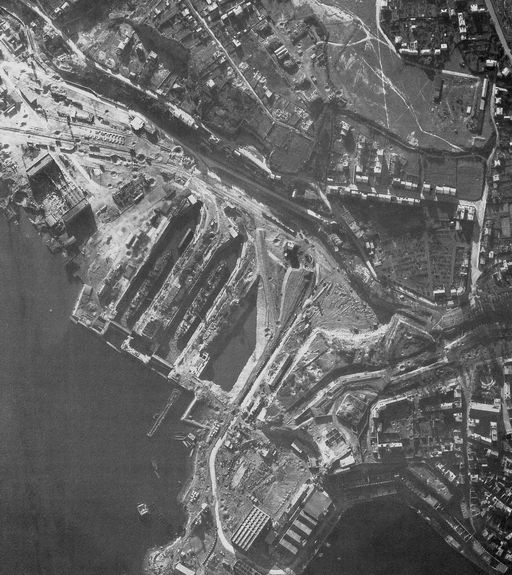 Vue aérienne verticale des fortifications d'agglomération et des poudrières de la Penfeld, 31 août 1944Immatriculation