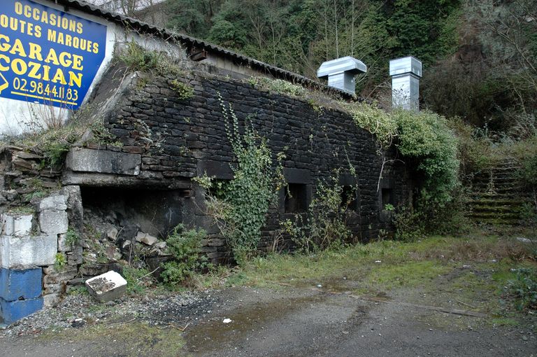 Vue des vestiges des fortifications d'agglomération de Brest au Moulin à poudre : mur défensif percé de créneaux de mousquetterie de la porte de la BrasserieImmatriculation