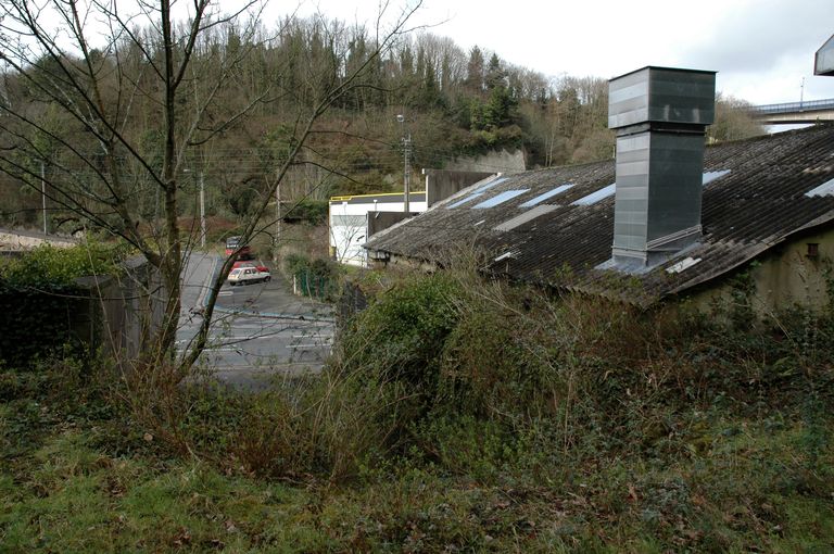 Vue des vestiges des fortifications d'agglomération de Brest au Moulin à poudre : mur défensif percé de créneaux de mousquetterie de la porte de la BrasserieImmatriculation