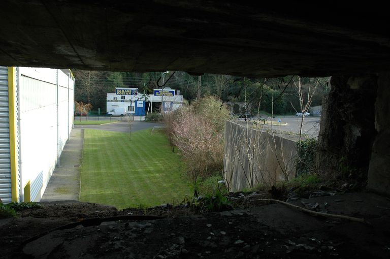 Vue de la casemate allemande pour canon de 47 mm antichars intégrée dans le mur défensif de la porte de la BrasserieImmatriculation