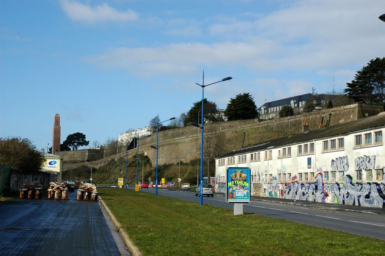 Vue des vestiges des fortifications d'agglomération de Brest : front bastionné du Cours DajotImmatriculation