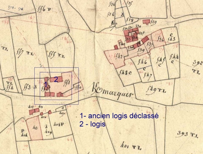 Partie ouest du village. Extrait du cadastre de 1812, section H 2 (A.D. Finistère, 3 P 279)Immatriculation