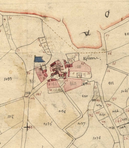 Partie sud du hameau. Extrait du cadastre de 1812, section E 3 (A.D. Finistère, 3 P 279)Immatriculation