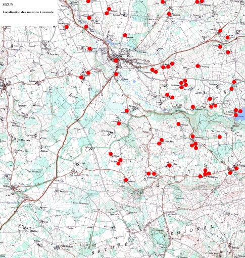 Localisation des maisons à avancée (ouest, centre et sud de la commune)Immatriculation