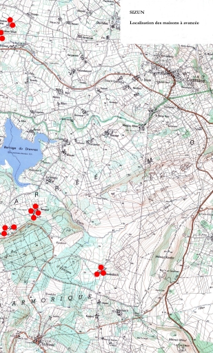 Les maisons, fermes et hameaux sur la commune de Sizun,