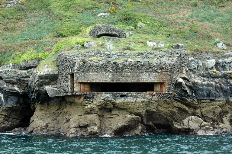 Vue générale du poste lance-torpilles de la pointe Robert. Poste situé au ras de l'eau, à l'ouest de la caserne défensiveImmatriculation