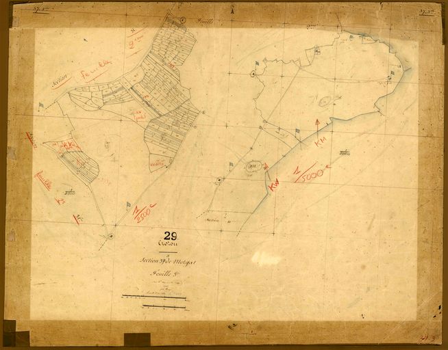 Plan de situation de l'ensemble fortifié de la pointe de Morgat, Beg Ar Gador ou pointe du Kador, cadastre ancien de la commune de Crozon, 1831, Archives Départementales du FinistèreImmatriculation