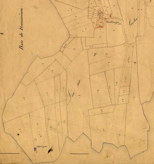 Plan de situation du corps de garde de Plomodiern dit Saint-Sébastien, 1851, extrait du cadastre ancien de la commune de Plomodiern, (Archives Départementales, Finistère, 3P234_003)Immatriculation