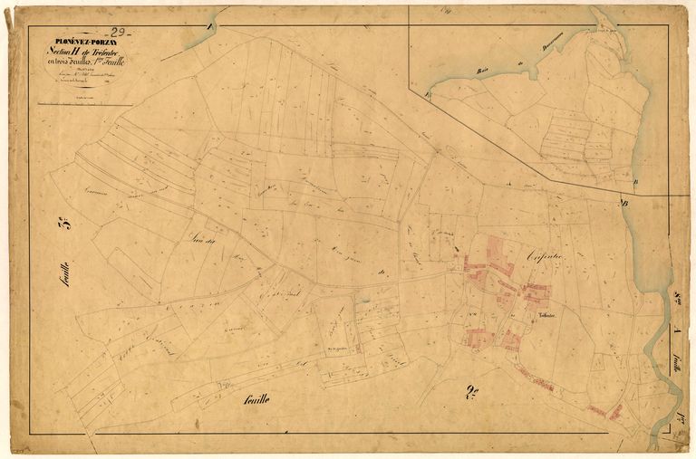 Plan de situation de la batterie et du corps de garde de Beg an Ty Garde, 1851, cadastre ancien de la commune de Plonévez-Porzay ( Archives Départementales, Finistère, 3P239_017)Immatriculation