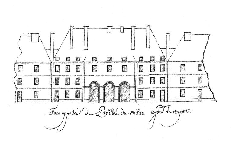Elévations des établissements maritimes du port de Brest, année 1807. Caserne des troupes de la Marine, n° 135 (face opposée du pavillon du milieu regardant le rempart)Immatriculation