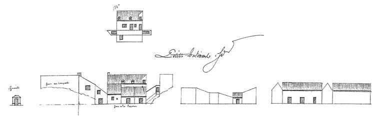 Elévations des établissements maritimes du port de Brest, année 1807. Petits bâtiments, guérite (face à la caserne, face au rempart)Immatriculation