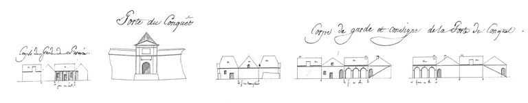 Développements des forts du camp retranché et des batteries de la côte du nord, année 1807. Corps de garde de l'Avancée. Porte du Conquet. Corps de garde et consigne de la porte du ConquetImmatriculation