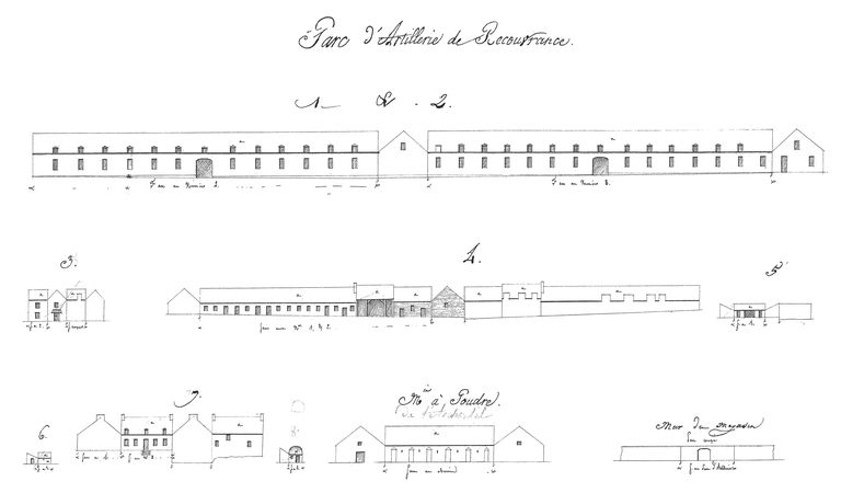 Développements des forts du camp retranché et des batteries de la côte du nord, année 1807. Parc d'Artillerie de Recouvrance. Batiments n° 1 à 7. Magasin à poudre de l'Archantel. Mur du magasin (face au parc d'artillerie)Immatriculation