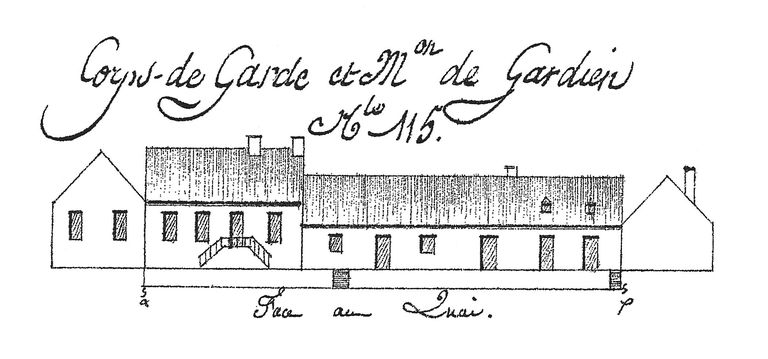 Suite des établissements maritimes, côté de Recouvrance, année 1807. Corps de garde et maison du gardien, n° 115 (face au quai)Immatriculation