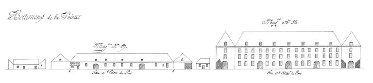 Suite des établissements maritimes, côté de Recouvrance, année 1807. Bâtiments de la Pointe. Magasins n° 57 (face à l'entrée du port) et n° 58 (face à l'entrée du port)Immatriculation