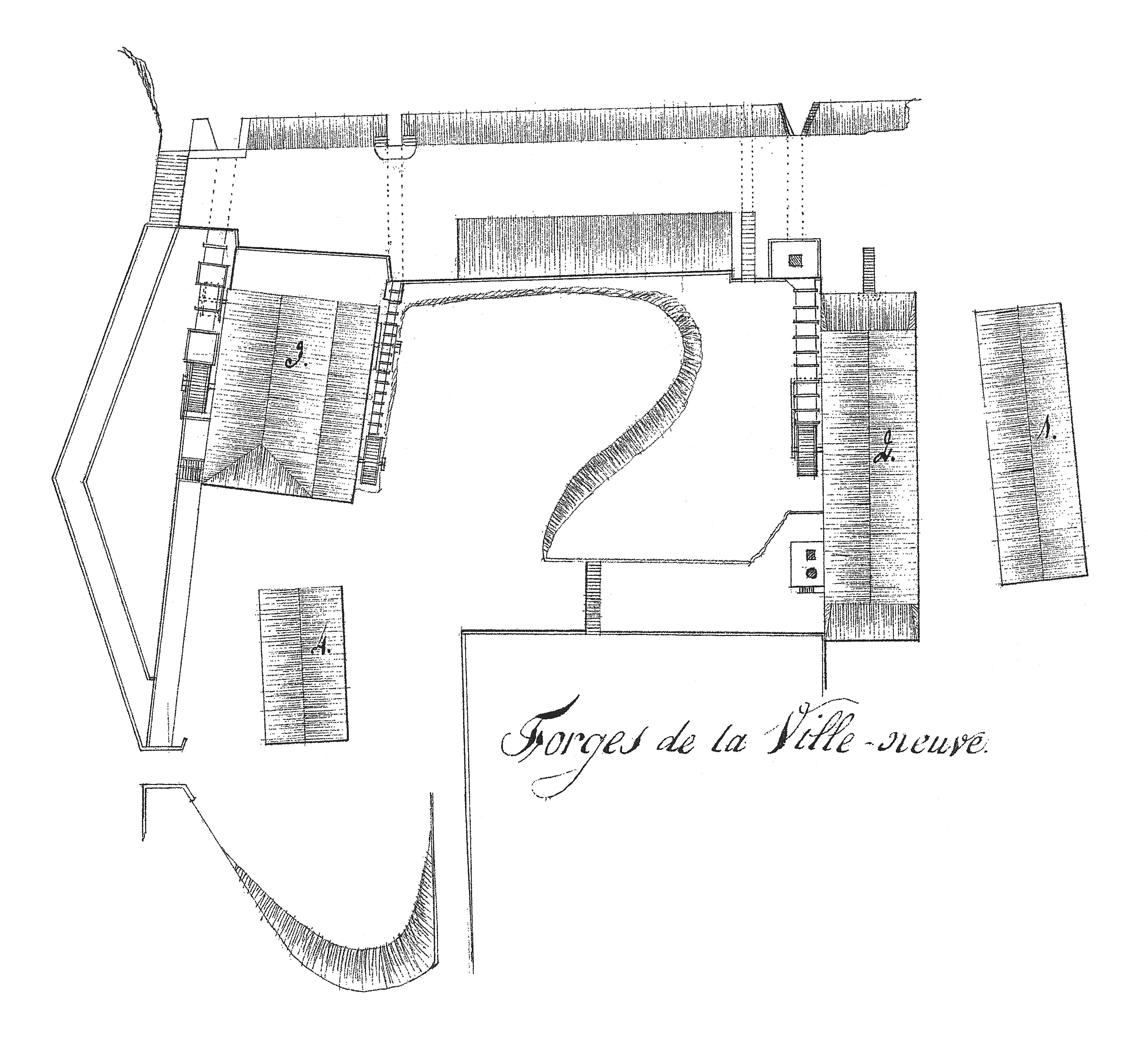 Suite des établissements maritimes, côté de Recouvrance, année 1807. Forges de La Ville-Neuve, plan d'ensemble (bâtiments n° 1 à 4)Immatriculation