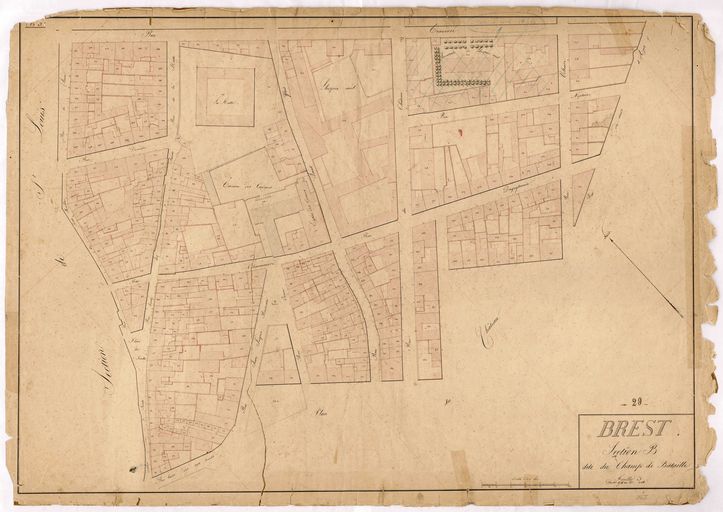 Feuille n° 3 du cadastre ancien de la commune de Brest : section B dite du Champ de Bataille, sans date, 1ère moitié 19e siècle, Archives Départementales du FinistèreImmatriculation