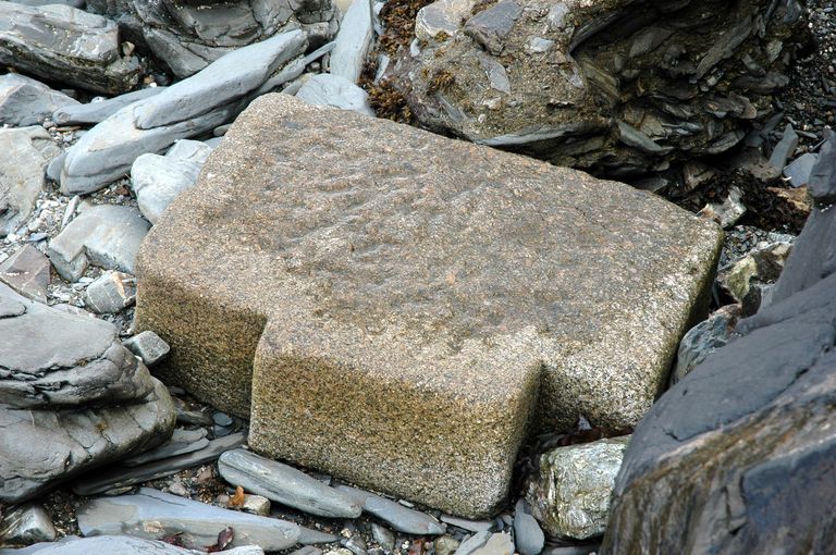 Vue de la grève au pied de la batterie casematée : pierre de taille (état en 2006)Immatriculation