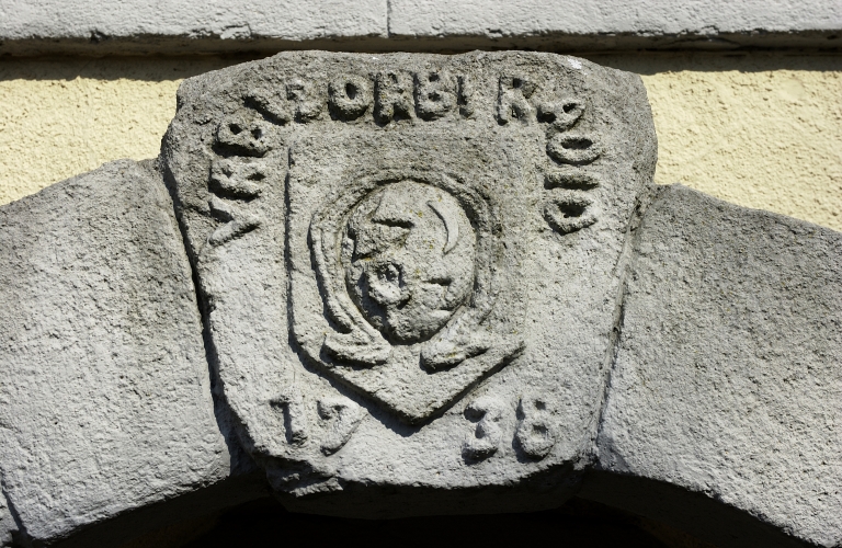 Elévation sud : détail de la clé du porcheImmatriculation