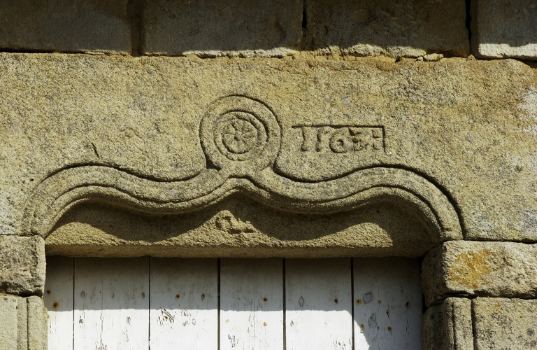 Détail d'un linteau de fenêtre avec date portéeImmatriculation