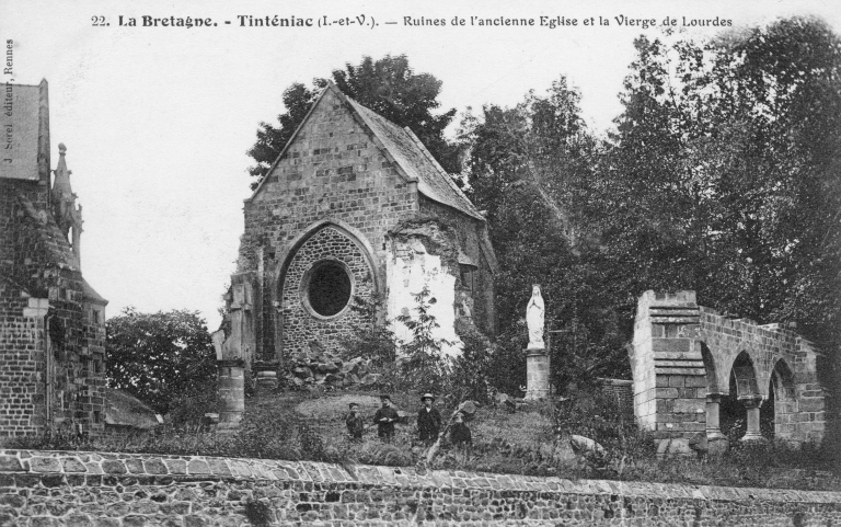 Ruines de l'ancienne église et Vierge de Lourdes, vue générale au début du 20e siècleImmatriculation