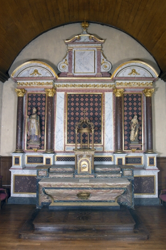 Maître-autel : autel, retable, tabernacle à dais d'exposition, gradins d'autel et degrés d'autel,