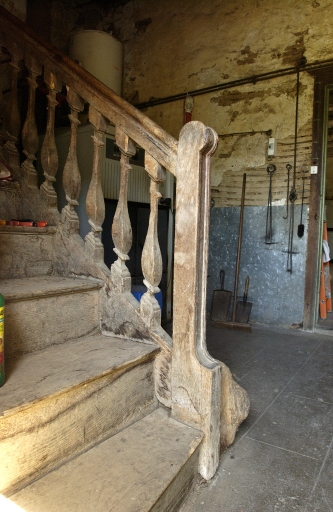Logis ; vue intérieure ; arrière cuisine, rampe d'escalierImmatriculation