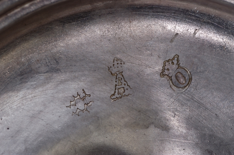 Sous le pied, les trois poinçons : de gauche à droite le poinçon de maître, le poinçon de charge et le poinçon de communautéImmatriculation